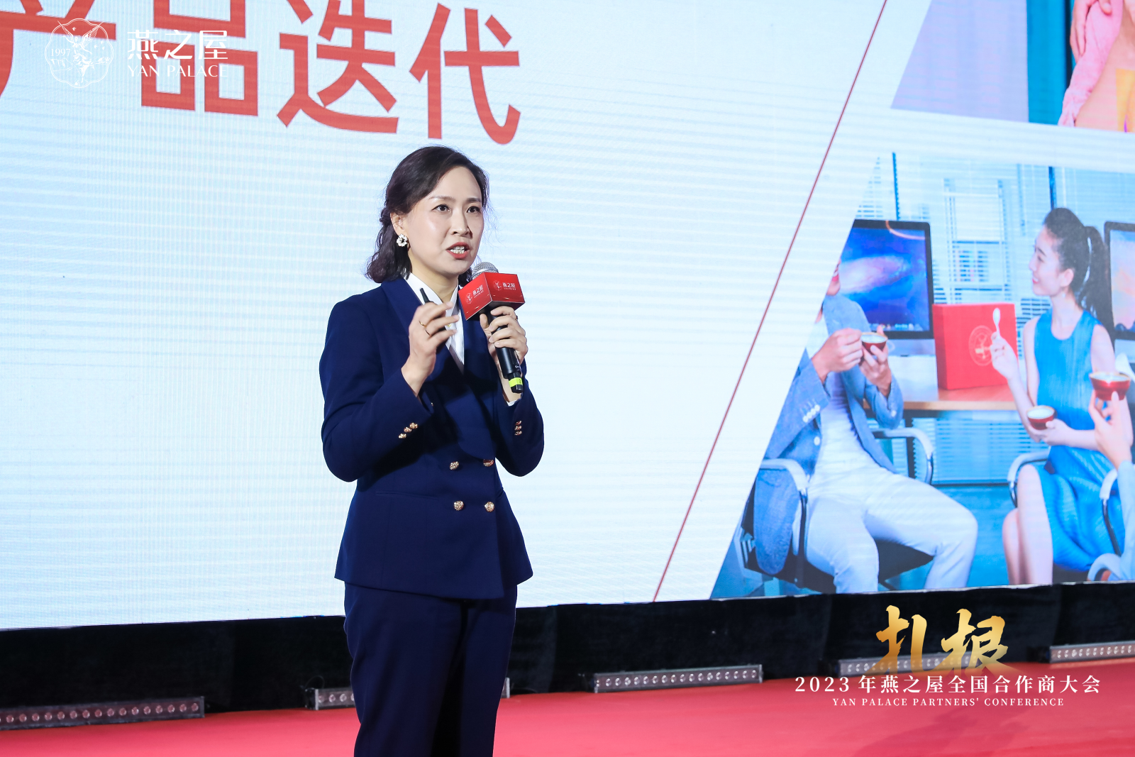 立足當下,志存高遠,隨后,燕之屋副總經(jīng)理、連鎖事業(yè)部總經(jīng)理翁惠貞就燕之屋2022年全國市場(chǎng)工作報告及2023營(yíng)銷(xiāo)做工作部署。與會(huì )的合作商們信心滿(mǎn)滿(mǎn),現場(chǎng)掌聲不斷。