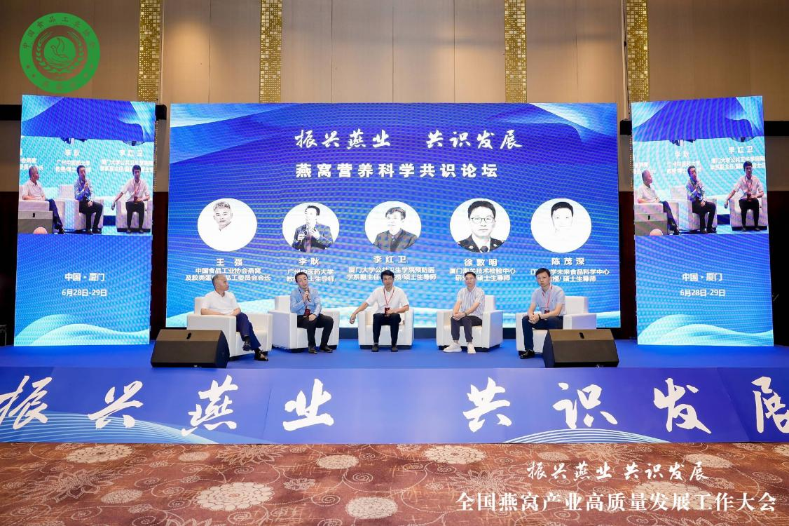 為推進(jìn)燕窩產(chǎn)業(yè)高質(zhì)量發(fā)展和品牌建設,穩固業(yè)態(tài)基礎,營(yíng)造行業(yè)良好的經(jīng)營(yíng)氛圍,6月28日-29日,由中國食品工業(yè)協(xié)會(huì )主辦,燕之屋協(xié)辦的“振興燕業(yè),共識發(fā)展”2023全國燕窩產(chǎn)業(yè)高質(zhì)量發(fā)展工作大會(huì )在廈門(mén)盛大舉行。中國食品工業(yè)協(xié)會(huì )副秘書(shū)長(cháng)張京玉,中國食品工業(yè)協(xié)會(huì )燕窩及膠類(lèi)蛋白食品工作委員會(huì )會(huì )長(cháng)王強,燕之屋品牌總監沈曉聰,馬來(lái)西亞燕窩產(chǎn)業(yè)出口協(xié)會(huì )會(huì )長(cháng)、拿督蔡千根,柬埔寨燕窩生產(chǎn)出口協(xié)會(huì )會(huì )長(cháng)吳慧珍,中國醫學(xué)科學(xué)院北京協(xié)和醫院臨床營(yíng)養科主任醫師馬方,福建省農林大學(xué)食品學(xué)院副院長(cháng)張怡,香港科技大學(xué)研究員董婷霞,華南理工大學(xué)教授任嬌艷,江南大學(xué)未來(lái)食品科學(xué)中心教授、碩士生導師陳茂深,廣州中醫藥大學(xué)教授、博士生導師李耿,廈門(mén)大學(xué)公共衛生學(xué)院副教授、碩士生導師李紅衛,等領(lǐng)導、專(zhuān)家和嘉賓出席大會(huì )。眾多食品行業(yè)及燕窩行業(yè)專(zhuān)家學(xué)者、企業(yè)家、從業(yè)者共聚一堂,共同探討燕窩行業(yè)未來(lái)發(fā)展規劃。