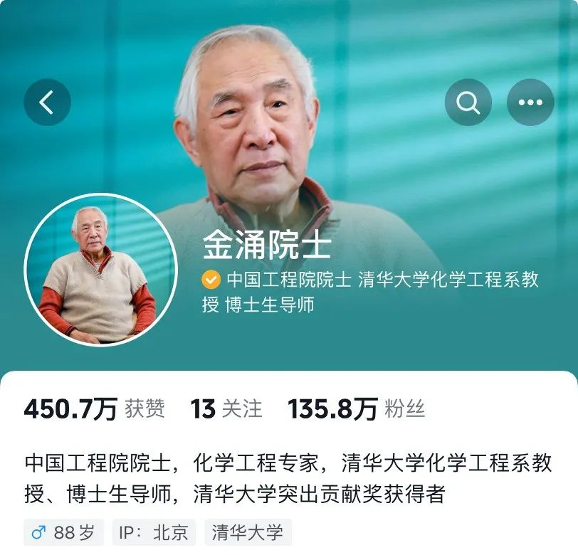 哪怕是從十多年前給孩子們講課算起,金涌也早已是“科普”的老手了。開(kāi)設短視頻賬號更像是順勢而為、雙向奔赴:網(wǎng)友們喜迎院士,院士找到新的樂(lè )趣。