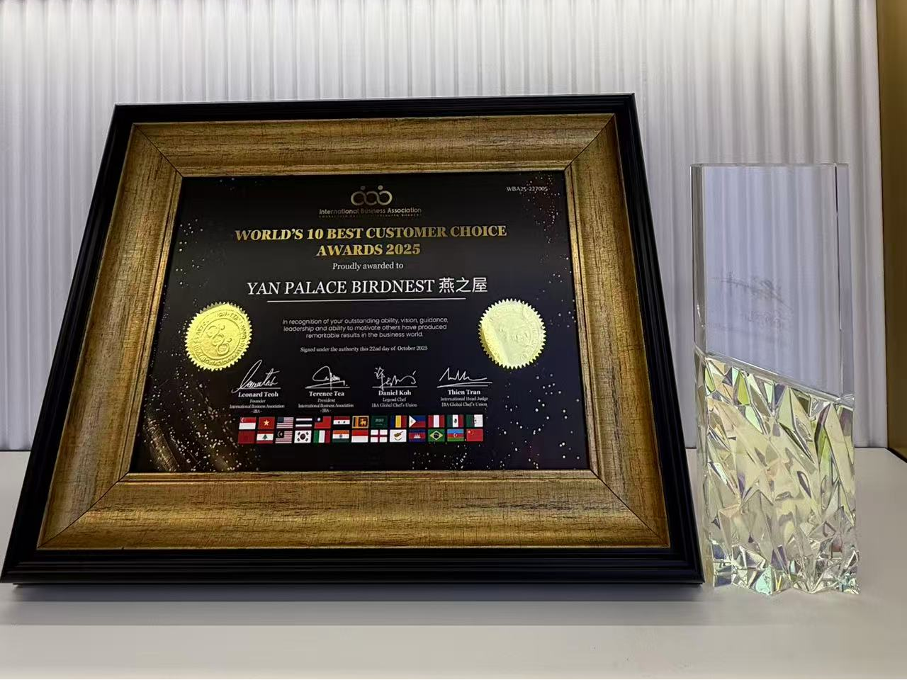 近日,燕之屋憑借其卓越的產(chǎn)品品質(zhì)和以客戶(hù)為核心的服務(wù)理念,斬獲2025年國際商業(yè)協(xié)會(huì )(IBA)大獎——全球十大最佳客戶(hù)選擇獎。這一國際殊榮不僅是對燕之屋品牌實(shí)力的認可,更是燕之屋不斷開(kāi)拓全球化市場(chǎng)的重要成果。