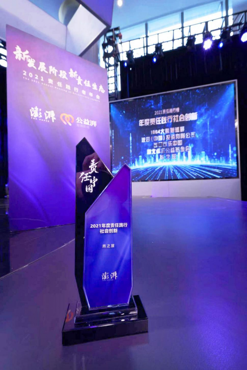 圖:燕之屋榮獲澎湃新聞“2021年度責任踐行社會(huì )創(chuàng )新”獎項