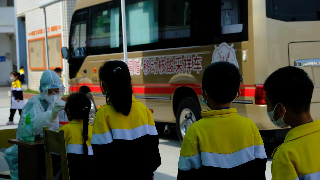 圖:燕之屋移動(dòng)核酸采樣車(chē)支援廈門(mén)市集美區安仁小學(xué)