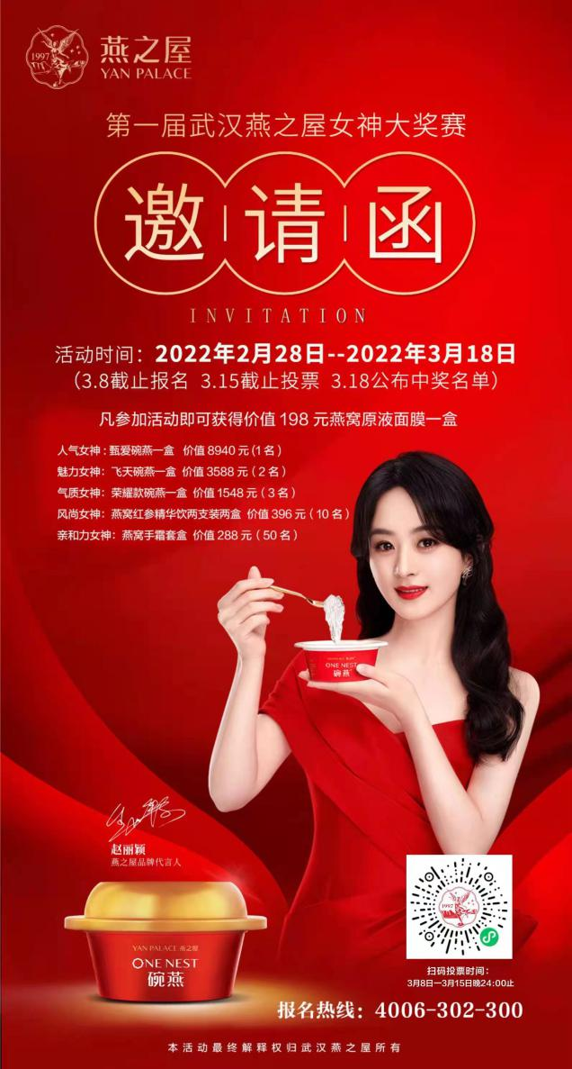 此次,燕之屋武漢市場(chǎng)借由女神大獎賽,傳遞給每一位參賽者“活出你的漂亮”的活動(dòng)宣言,正如燕之屋品牌代言人趙麗穎般專(zhuān)注自我,認真生活。趙麗穎作為燕之屋品牌代言人,不僅是實(shí)力派演員,更擁有著(zhù)非常高的知名度和國民度。她在演藝事業(yè)上兢兢業(yè)業(yè),用心塑造每一個(gè)角色,出道至今,趙麗穎用一個(gè)個(gè)鮮活的熒幕形象,不斷突破自己,勇敢做自己,讓每一次突破都變得鮮活、漂亮。