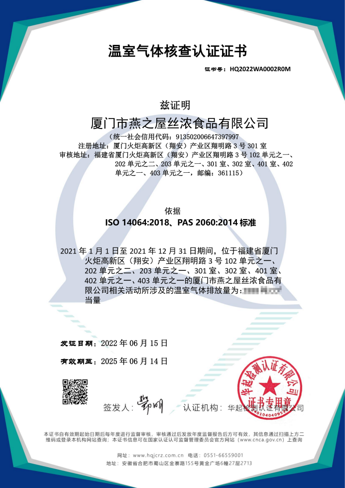 近日,燕之屋榮獲“產(chǎn)品碳足跡認證證書(shū)”與“溫室氣體核查認證證書(shū)”,這標志著(zhù)燕之屋在踐行 “碳達峰、碳中和”目標上邁出了實(shí)質(zhì)性一步。