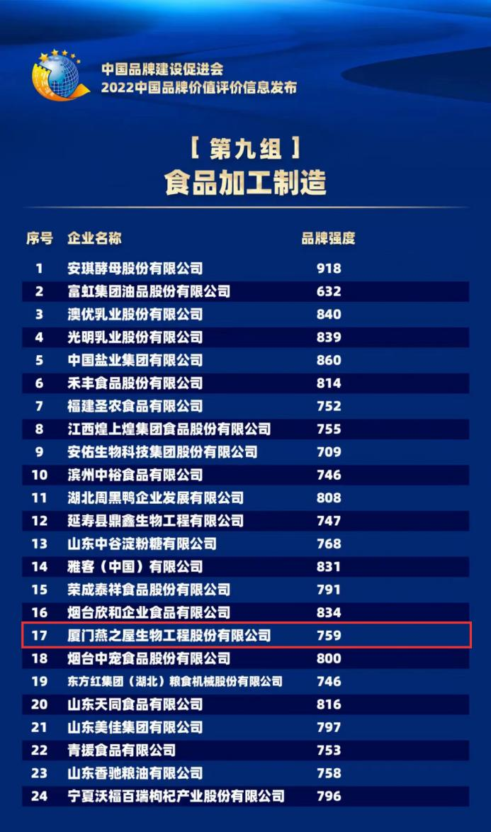 圖:燕之屋成為唯一榮登2022中國品牌價(jià)值評價(jià)信息發(fā)布榜的燕窩品牌