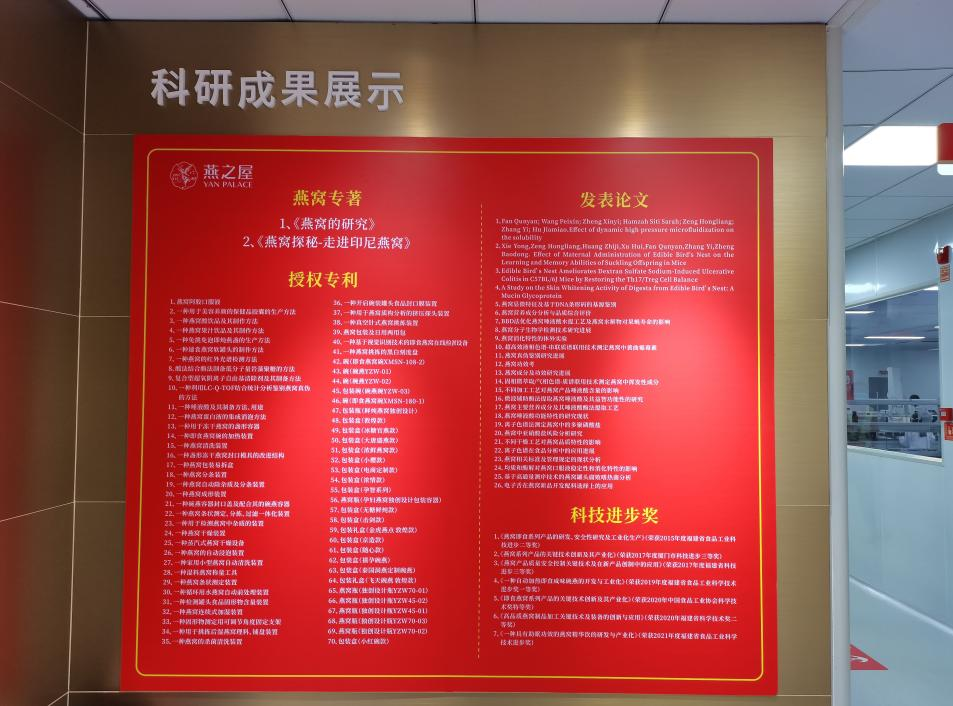 燕之屋緊緊追隨時(shí)代的腳步,呼應消費者需求,其背后是潛心科技研發(fā),助力打造民族品牌的路徑。24年專(zhuān)注高品質(zhì)燕窩,燕之屋深知品牌建設非一日之功,堅持研發(fā)創(chuàng )新是塑造品牌價(jià)值強有力的支撐。一方面,燕之屋擁有業(yè)內相當知名的專(zhuān)業(yè)機構“燕之屋燕窩研究院”——由中國工程院、中國科學(xué)院的院士,以及江南大學(xué)、廈門(mén)大學(xué)、廣州中醫藥大學(xué)、福建農林大學(xué)、廈門(mén)海關(guān)技術(shù)中心等高校機構專(zhuān)家教授以及企業(yè)科研團隊組成,為推動(dòng)燕窩的基礎研究、以及營(yíng)養價(jià)值等科學(xué)范疇的科研活動(dòng)做出了積極貢獻。截止2022年6月27日,燕之屋持有專(zhuān)利75項,其中發(fā)明專(zhuān)利12項,實(shí)用新型專(zhuān)利33項,外觀(guān)設計專(zhuān)利30項。