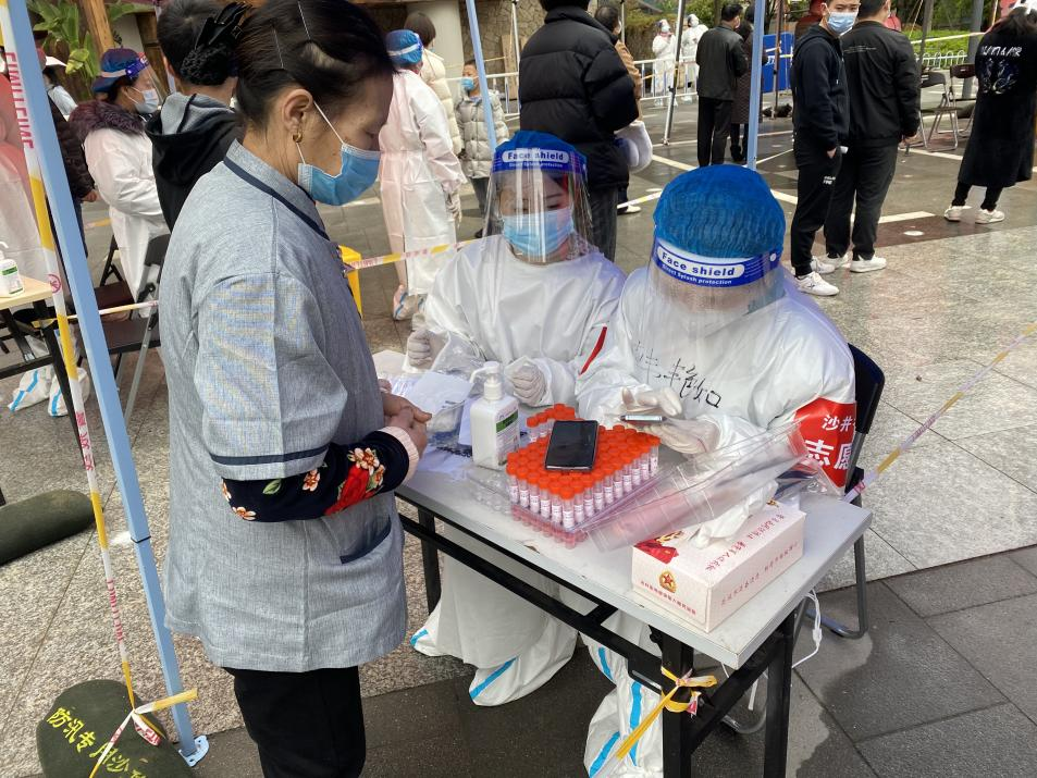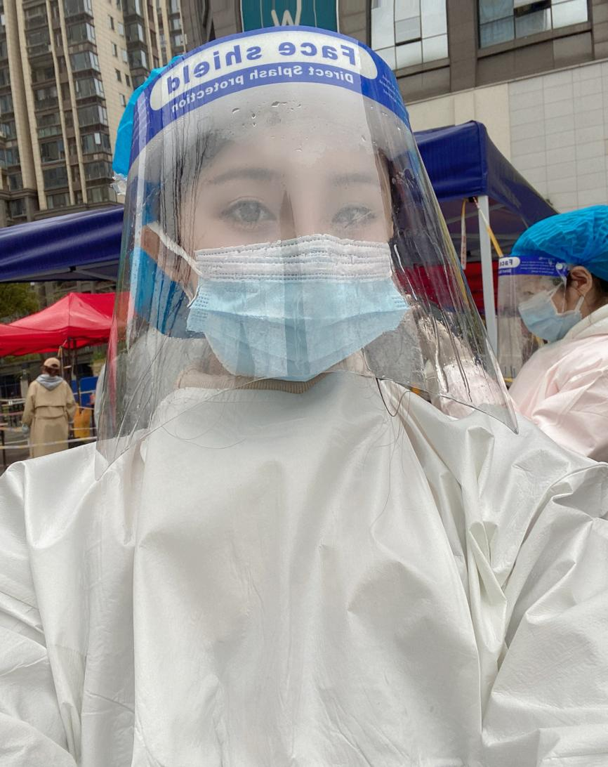 熊紫蓮的工作是協(xié)助當地核酸檢測點(diǎn),規范、有序、高效地進(jìn)行區域全員核酸檢測采樣工作,主要負責掃描昌通碼登記居民信息、分發(fā)口咽拭子。每天早上六點(diǎn)起床,直到下午5點(diǎn)結束,穿著(zhù)防護服的熊紫蓮在采樣點(diǎn)掃描二維碼、確認人員信息、保證將試管交給“管長(cháng)”,在長(cháng)達11個(gè)小時(shí)的服務(wù)中,重復這樣的動(dòng)作數百次。