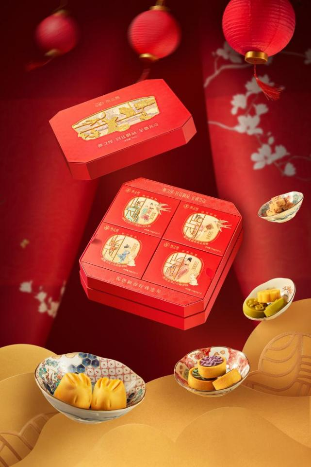 借京劇之美,傳承千年(*“早在唐代我國就已用瓷器與北婆羅洲大尼亞巖洞所產(chǎn)的燕窩進(jìn)行物對物的交換,交換品也成為了宮庭的御用珍品。”《藥物與人》August 2000(Vol13)P349)燕窩養生文化。燕之屋·宮廷御品·金燕名點(diǎn)禮盒內含四款各具韻味的點(diǎn)心,其中燕窩蔓越莓黃金蛋酥內盒圖案以《乾隆帝歲朝行樂(lè )圖》為靈感,渲染出了皇家歲朝喜慶祥和的氣氛,傳遞祈福求順、迎祥納福的美好愿望;燕窩巧克力京劇臉譜酥內盒以《康熙萬(wàn)壽圖》為靈感,描繪出兩個(gè)孩童戲笑玩樂(lè ),預示好戲連年;燕窩金兔百合椰蓉糕、燕窩白蕓豆奶黃流心豆乳糕二者內盒圖案靈感都來(lái)源自《歲朝歡慶圖》,呈現了過(guò)年闔家歡慶團圓的場(chǎng)面,象征闔家美滿(mǎn)。
