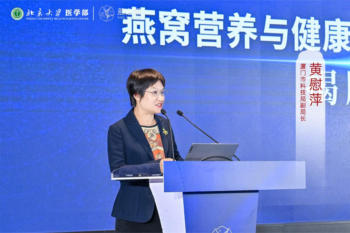 揭牌儀式開(kāi)場(chǎng),廈門(mén)市科技局副局長(cháng)黃慰萍發(fā)表致辭,她首先代表廈門(mén)市科技局對實(shí)驗室的成立表示熱烈地祝賀,并表示:“燕之屋一直致力于推動(dòng)燕窩產(chǎn)業(yè)的創(chuàng )新發(fā)展,擁有先進(jìn)的燕窩研發(fā)技術(shù)和豐富的市場(chǎng)經(jīng)驗。北京大學(xué)醫學(xué)部具有百年的歷史,具有雄厚的科研實(shí)力和豐富的教學(xué)經(jīng)驗。兩家校企合作,將充分發(fā)揮各自的優(yōu)勢,共同推動(dòng)醫療科技創(chuàng )新和應用。作為北京大學(xué)醫學(xué)部和燕之屋聯(lián)合實(shí)驗室揭牌儀式的見(jiàn)證人,我也深信這次的合作將帶來(lái)重要的發(fā)展意義,雙方將以此為新的契機和起點(diǎn),探尋科技成果轉化的新思路和新舉措,深度融合醫學(xué)科研研究的創(chuàng )新力量,產(chǎn)出一批真正能服務(wù)于國民健康的優(yōu)質(zhì)創(chuàng )新成果,從而進(jìn)一步推動(dòng)燕窩行業(yè)的高質(zhì)量發(fā)展。”