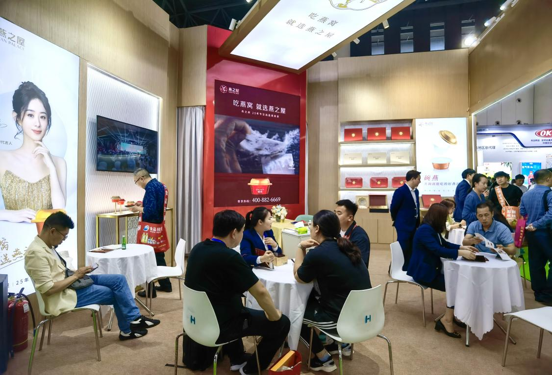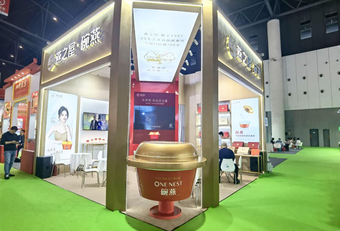 在開(kāi)好局、起好步,擴大內需,統籌雙循環(huán)背景下,餐飲消費復蘇,食品行業(yè)再次迎來(lái)快速發(fā)展的時(shí)機。作為燕窩行業(yè)的“領(lǐng)頭燕”、食品產(chǎn)業(yè)的一員,燕之屋秉承“一碗好燕窩,滋潤天下人”的初心,在傳承千年燕窩養生文化*的道路上已經(jīng)匠心前行25年(*“早在唐代我國就已用瓷器與北婆羅洲大尼亞巖洞所產(chǎn)的燕窩進(jìn)行物對物的交換,交換品也成為了宮庭的御用珍品。”《藥物與人》August 2000(Vol13)P349)。燕窩自古以來(lái)就被視為滋補佳品,汪昂在《本草備要》中載:“燕窩甘淡平,大養肺陰,補而能清”,《本草求真》中亦載:“燕窩入胃補中,俾其補不致燥,潤不致滯”。千年輪回,燕之屋將古法技藝延續,用科技升華,使得燕窩滋補不再繁瑣,讓這份食養在時(shí)光中沉淀流傳,在當今時(shí)代繼續煥發(fā)光彩。在本屆糖酒會(huì )上,燕之屋碗燕·尊享款、濃情款禮盒、禧孕系列等全品類(lèi)產(chǎn)品驚艷登場(chǎng),濃濃滋養、碗碗尊貴,每一款產(chǎn)品都是25載匠心與精湛工藝的結晶,綻放出傳統燕窩的新風(fēng)采,為食品行業(yè)注入新活力。展臺設計則以金檳色為主色調,中國紅為輔,打造了高端典雅的滋補場(chǎng)景,展現了中式燕窩養生文化的自信表達。