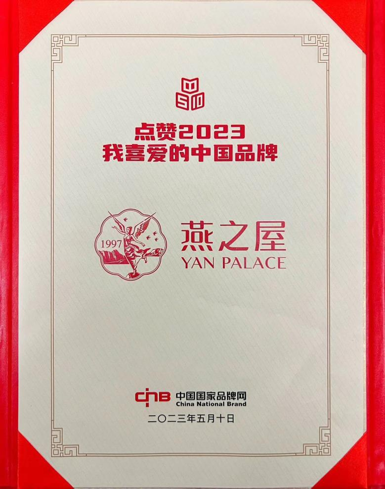 圖:燕之屋榮獲“2023 我喜愛(ài)的中國品牌”稱(chēng)號