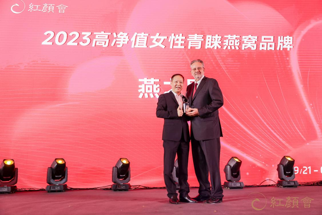圖:燕之屋榮獲2023最受中國高凈值女性青睞品牌(左:燕之屋創(chuàng )始人、董事長(cháng)黃健,