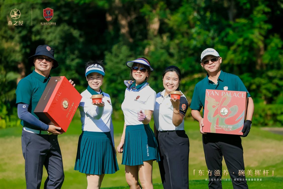 本次賽事設置了總桿冠亞季軍、凈桿冠亞季軍、最遠距離獎、最近洞獎等多個(gè)獎項。高球精英們于綠茵草甸、湖光山色中自在揮桿,比拼對戰,展現個(gè)人球技與高爾夫運動(dòng)的魅力。燕之屋在球場(chǎng)設置能量補給站,為球員們準備燕窩、燕窩粥、能量飲料、水果等,助力球員揮桿得勝。