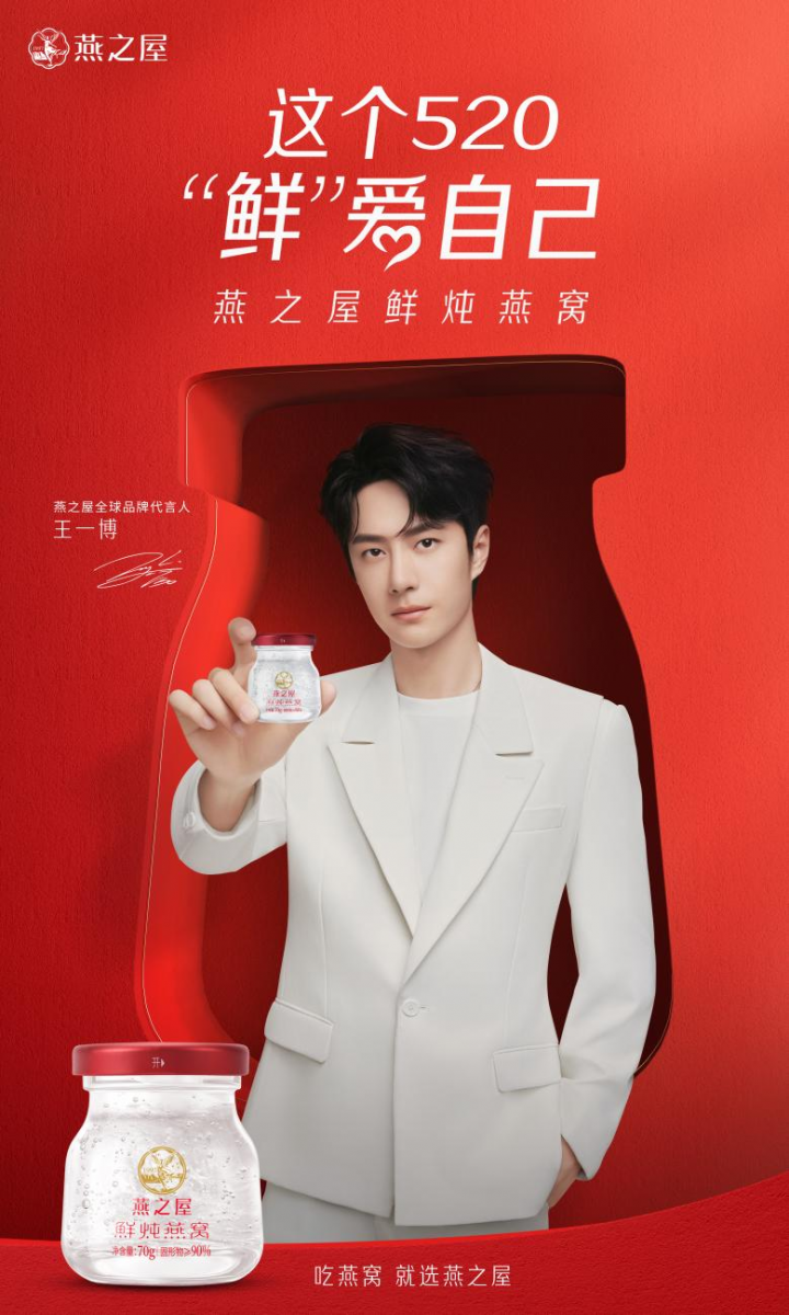 5月20日,燕之屋官宣王一博成為全球品牌代言人,全新品牌代言TVC大片同步釋出,由王一博鮮活開(kāi)啟燕之屋520“鮮”愛(ài)自己計劃。官宣當日,燕之屋與王一博于微博發(fā)布官宣博文,同時(shí)微博上線(xiàn)官宣開(kāi)屏廣告,話(huà)題#王一博燕之屋全球品牌代言人#沖上微博熱搜。