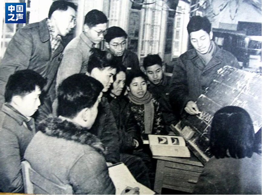 圖:1959年,方成和同學(xué)們討論太陽(yáng)塔設計。