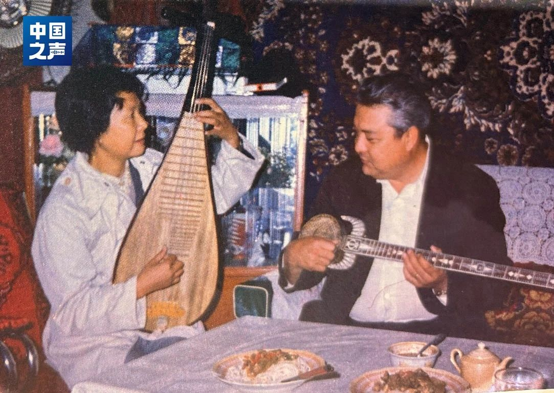 圖:王勁梅和被譽(yù)為“都塔爾王子”的木沙江·肉孜先生
