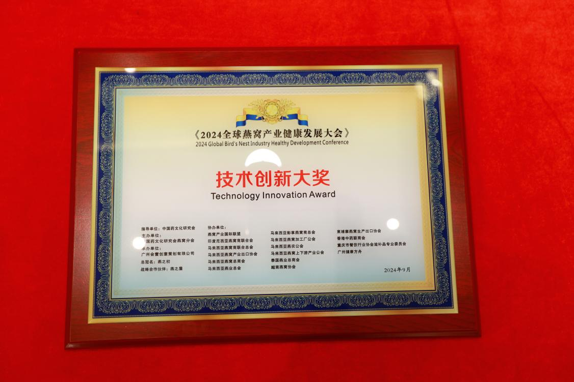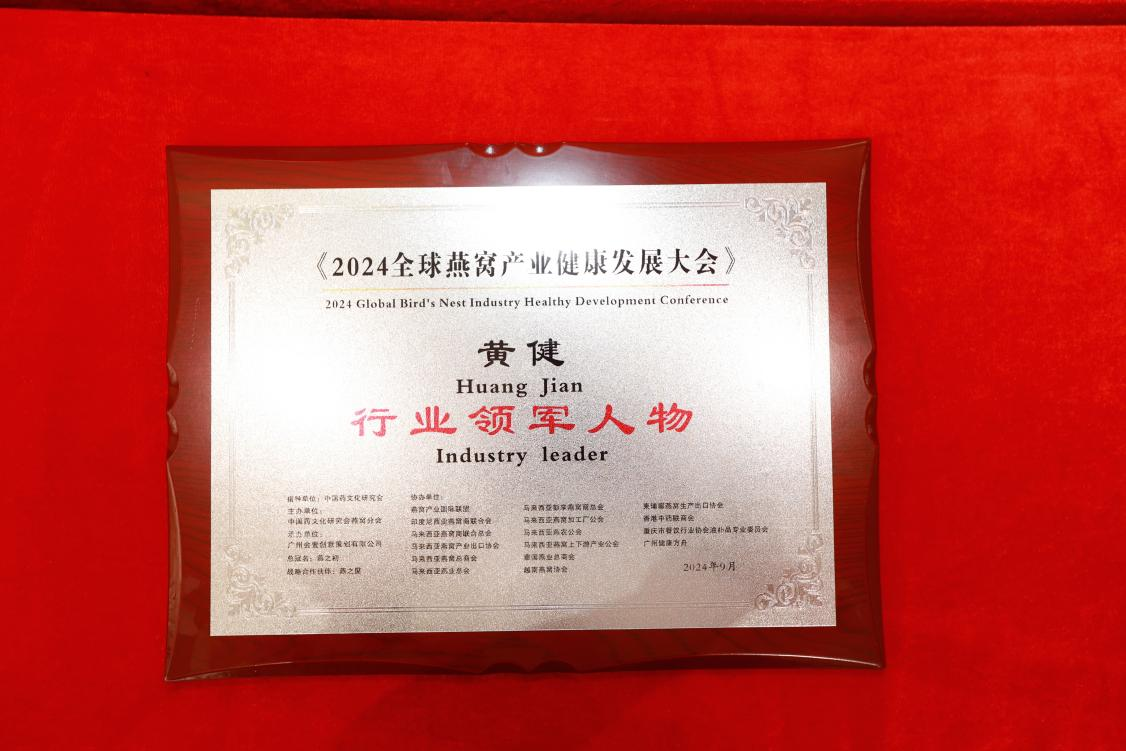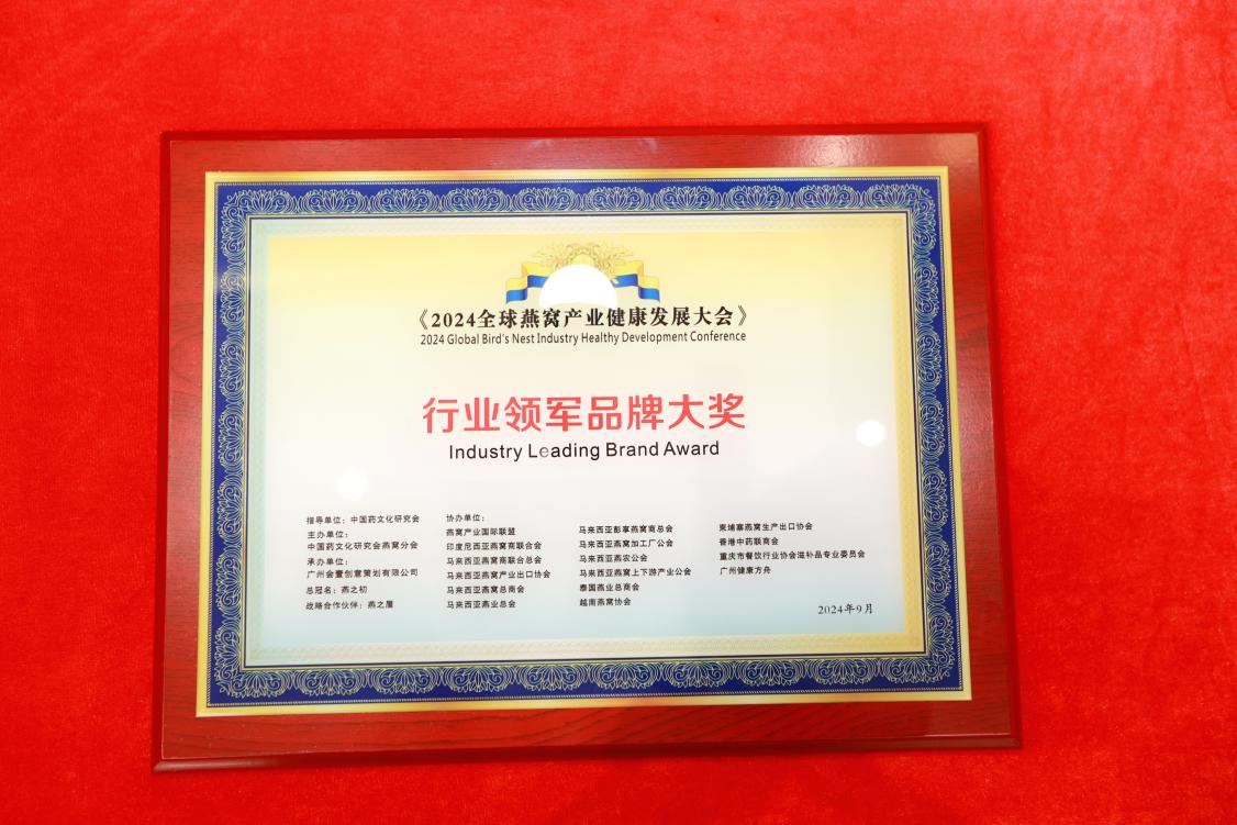 9月23日,在榜樣的力量一行業(yè)表彰盛典上,燕之屋憑借先進(jìn)的創(chuàng )新引領(lǐng)力、卓越的產(chǎn)品競爭力、強勁的品牌影響力榮獲行業(yè)領(lǐng)軍品牌大獎、行業(yè)匠心品牌大獎、技術(shù)創(chuàng )新大獎,燕之屋創(chuàng )始人、執行董事兼董事長(cháng)黃健榮獲行業(yè)領(lǐng)軍人物;燕之屋傾情助力2024全球燕窩產(chǎn)業(yè)健康發(fā)展大會(huì ),進(jìn)一步推動(dòng)燕窩產(chǎn)業(yè)的創(chuàng )新發(fā)展,促進(jìn)燕窩文化的傳承與交流,為行業(yè)的繁榮貢獻力量,獲頒《2024全球燕窩產(chǎn)業(yè)健康發(fā)展大會(huì )》戰略合作單位,并成為《2024全球燕窩產(chǎn)業(yè)健康發(fā)展大會(huì )》唯一指定碗燕即食燕窩品牌,燕之屋公關(guān)總監楊航上臺領(lǐng)獎。