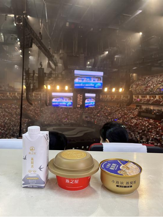 燕之屋專(zhuān)屬貴賓包廂位于場(chǎng)館包廂層觀(guān)演區,以獨立豪華私享空間、劇場(chǎng)型座椅、餐飲服務(wù)等高級配置,為客戶(hù)打造舒適、自由、高品質(zhì)的觀(guān)演新體驗。包廂客戶(hù)不僅可以享受專(zhuān)屬便捷入場(chǎng)通道、視野廣闊的沉浸式觀(guān)演,還可享用燕之屋小燕濃燕窩粥、燕之屋燕窩肽天然蘇打水,升級美好視聽(tīng)盛宴。燕之屋借助持續火爆的演出市場(chǎng),將品牌傳播與演唱會(huì )創(chuàng )新結合,通過(guò)邀請觀(guān)看演唱會(huì )的方式答謝忠實(shí)客戶(hù),深受客戶(hù)喜愛(ài)。
