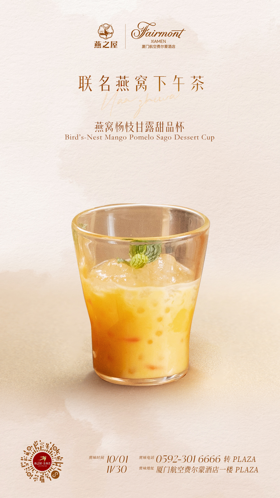 燕之屋深耕燕窩領(lǐng)域二十七載,始終恪守“一碗好燕窩,滋潤天下人”的初心,建立從原料溯源到成品輸出的全產(chǎn)業(yè)鏈質(zhì)量管控體系,致力于讓高端燕窩滋養走進(jìn)現代生活。廈門(mén)航空費爾蒙酒店,以“經(jīng)典風(fēng)華,再現閩南”為理念,既承襲費爾蒙品牌百年藝術(shù)① ,又將老好萊塢時(shí)期的裝飾藝術(shù)風(fēng)格與閩南傳統經(jīng)典元素巧妙融合,塑造出獨特的典雅空間。此次兩大品牌跨界聯(lián)袂,恰是對高品質(zhì)生活美學(xué)的共同詮釋?zhuān)荚跒楝F代都市人打造一方可品味、可感知的慢生活空間。