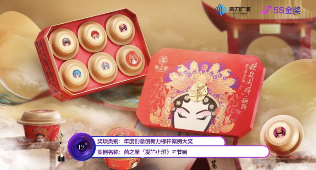 創(chuàng )新是企業(yè)的核心,是企業(yè)實(shí)現可持續發(fā)展的動(dòng)能。作為燕窩行業(yè)“領(lǐng)頭燕”,燕之屋始終堅持以創(chuàng )新力推動(dòng)燕窩文化傳承與品牌傳播,探尋創(chuàng )意破圈之道。此次獲獎案例《愛(ài)的小屋》是由燕之屋獨家冠名的一檔電臺欄目,由知名主持人崔丹主持,在廈門(mén)經(jīng)濟交通廣播FM107中播出,開(kāi)播至今收獲聽(tīng)眾熱情支持,節目收聽(tīng)率逐月增長(cháng)。燕之屋創(chuàng )意布局廣播市場(chǎng),打造《愛(ài)的小屋》IP項目,立足聲音媒體創(chuàng )新傳播,以廣播節目加持品牌出圈。新穎獨到的品牌+電臺軟性營(yíng)銷(xiāo)不僅拉近品牌與受眾的距離,有效擴大品牌形象傳播,更引領(lǐng)行業(yè)打開(kāi)營(yíng)銷(xiāo)新思路,煥發(fā)新活力。