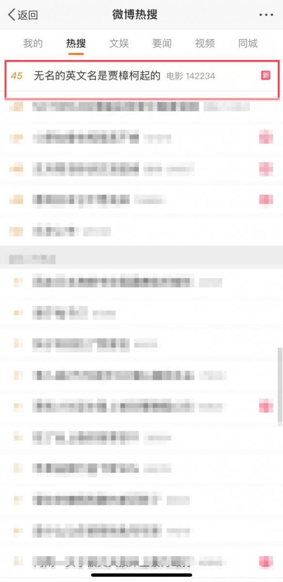 圖:話(huà)題#無(wú)名的英文名是賈樟柯起的#登上微博熱搜